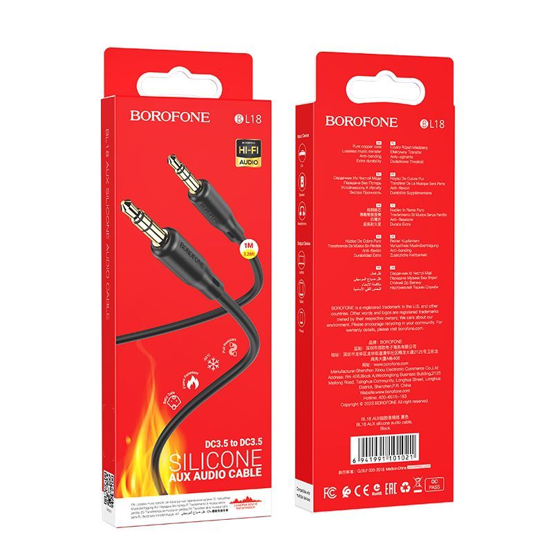 /Акустический кабель Borofone BL18 (силиконовый,1м ) цвет: Чёрный