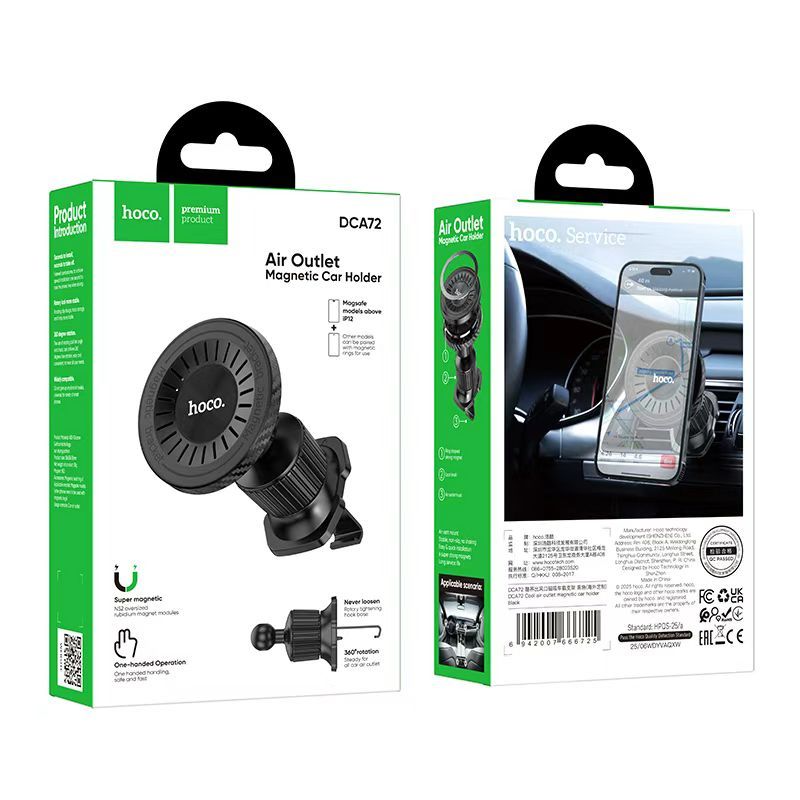 Автодержатель Hoco DCA72 магнитный с кольцом,в решетку цвет: черный