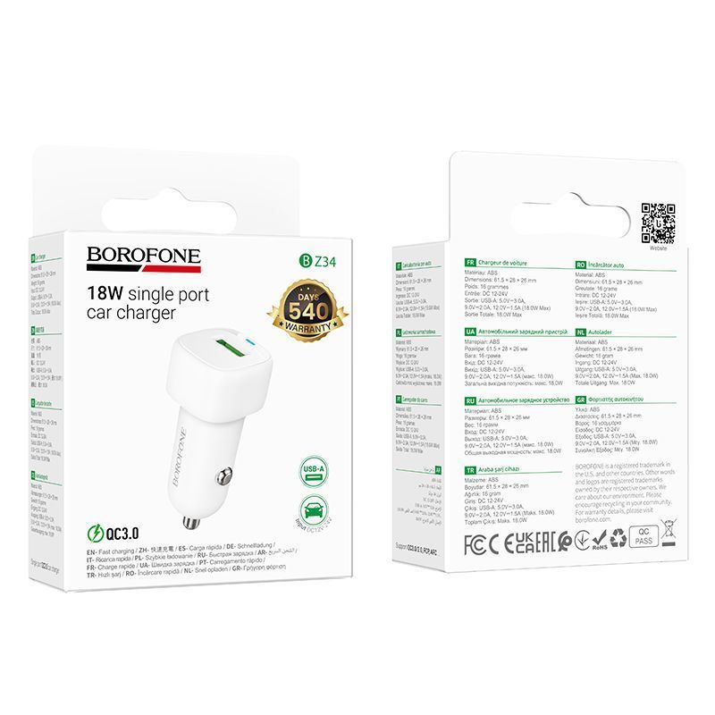 • Автомобильное ЗУ Borofone BZ34 (QC3.0) цвет: белый