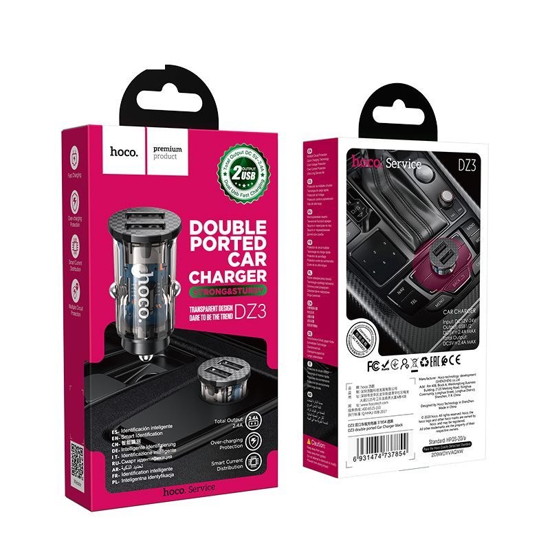 Автомобильное ЗУ Hoco DZ3 (2 USB: 2.4A) цвет: черный