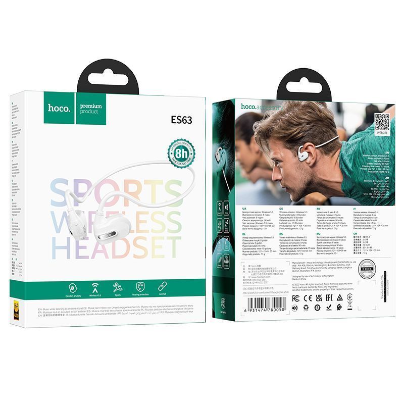 Беспроводные наушники Hoco ES63 (спортивные) цвет: белый
