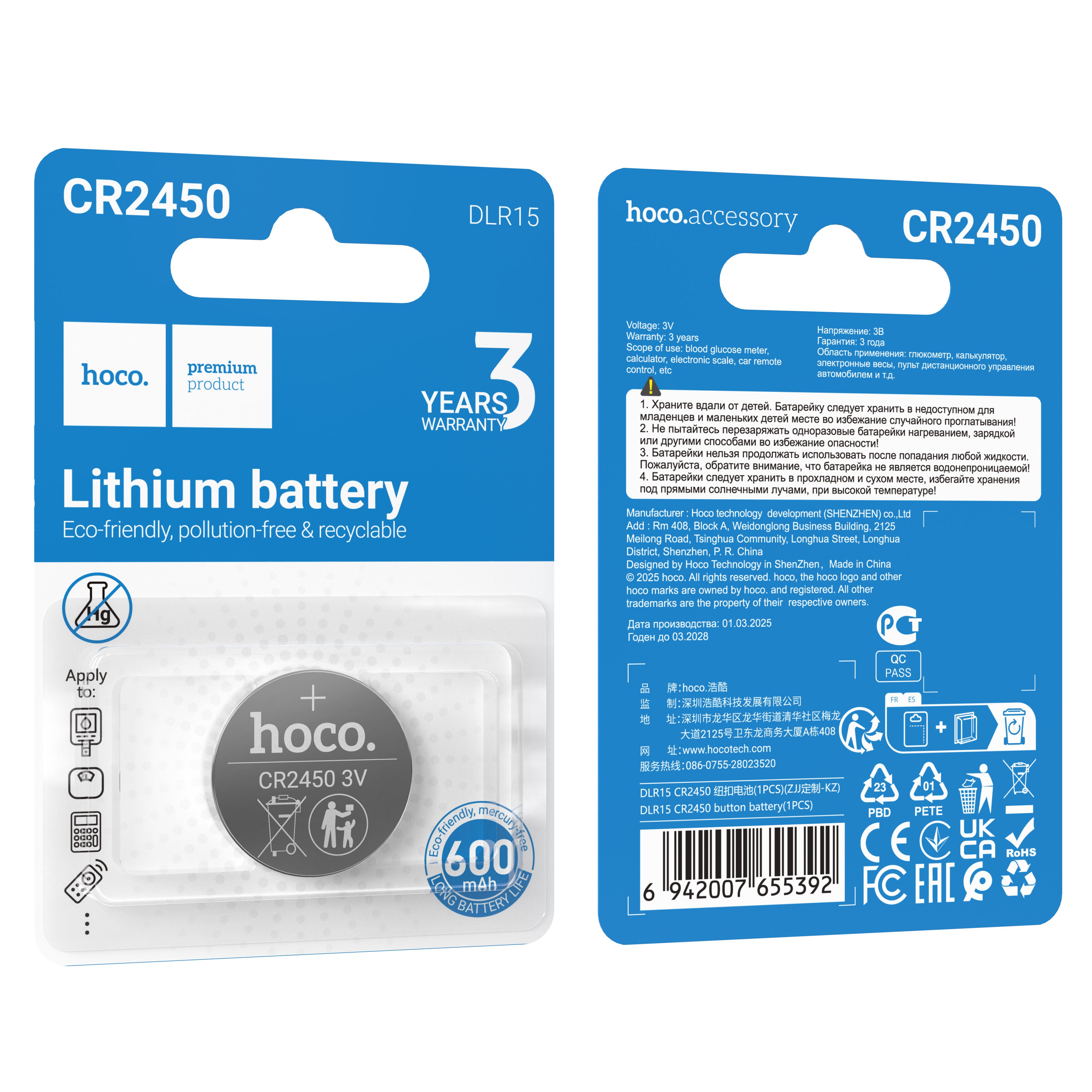 Элемент питания Hoco CR2450/1BP