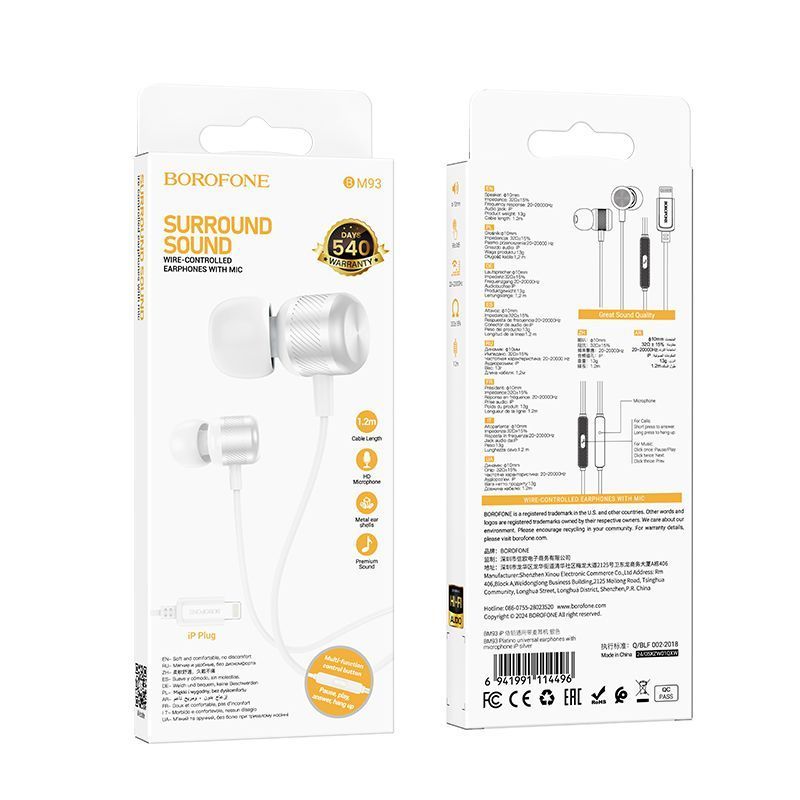 Разъемы Lightning Тип Проводные наушники Borofone -