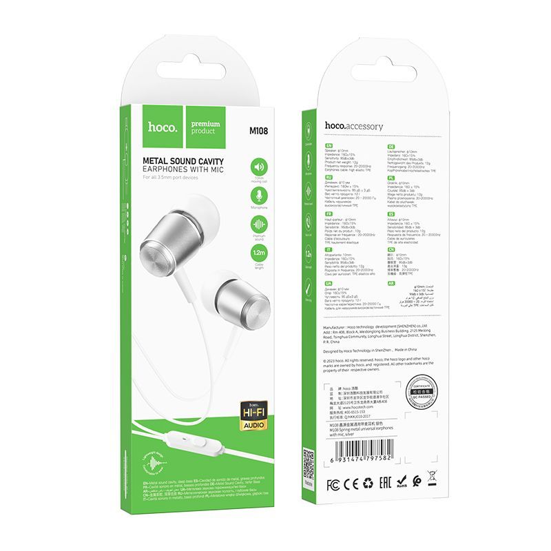 Наушники Hoco M108 с микрофоном цвет: серебро