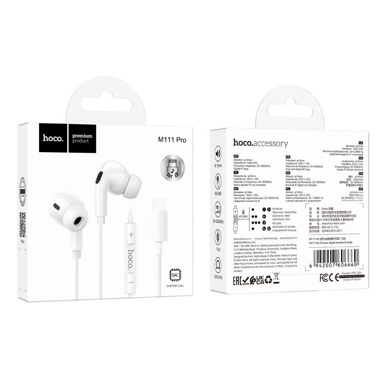 Цвет Белый Длина кабеля, м 1,2 м Разъемы Lightning Штекер Lightning Материал корпуса АБС+ТПЭ Дополнительные параметры с микрофоном Тип Проводные наушники Hoco -