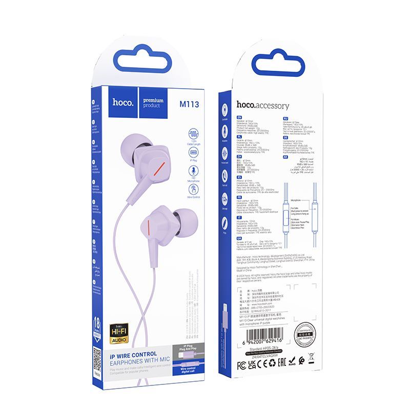 Разъемы IP Тип Проводные наушники Hoco -