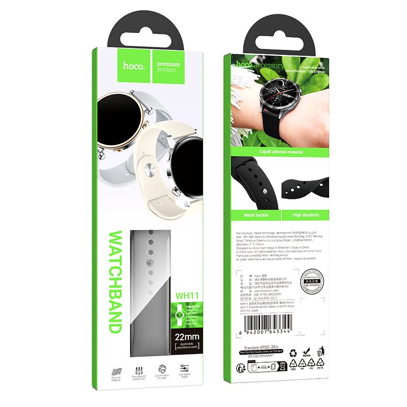 Ремешок для часов Hoco WH11 (силиконовый, классический 22mm) цвет: серый