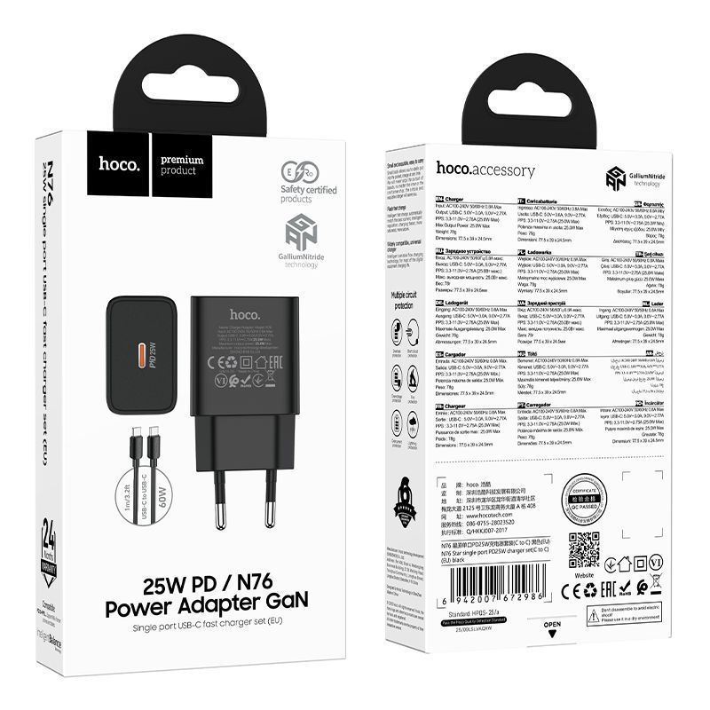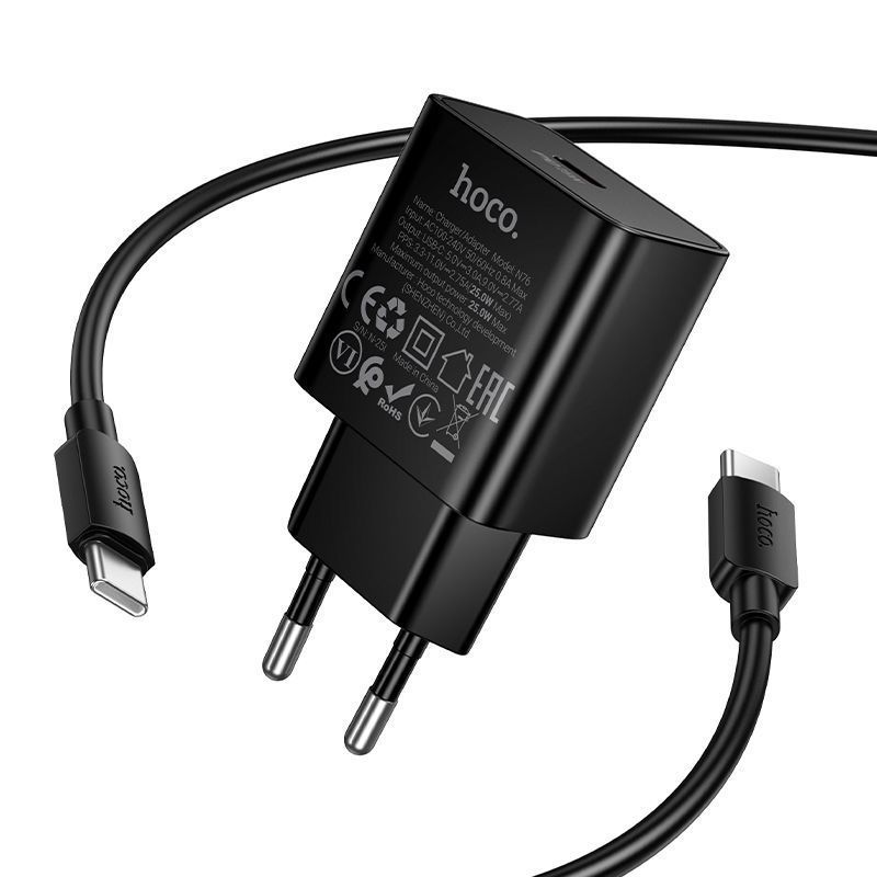 Сетевое зарядное устройство Hoco N76 (PD25W+кабель Type C-Type-C) цвет: черный