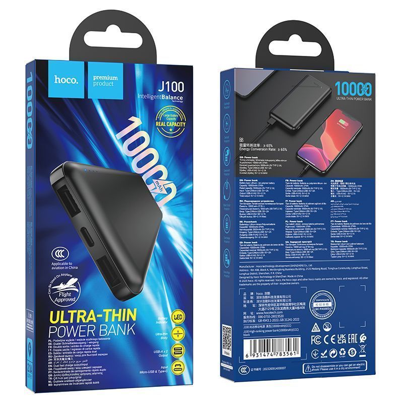 • Внешний аккумулятор Hoco J100  10000mAh цвет: Чёрный (ССС)