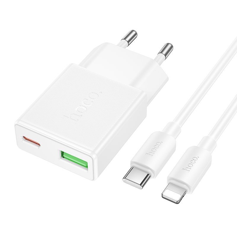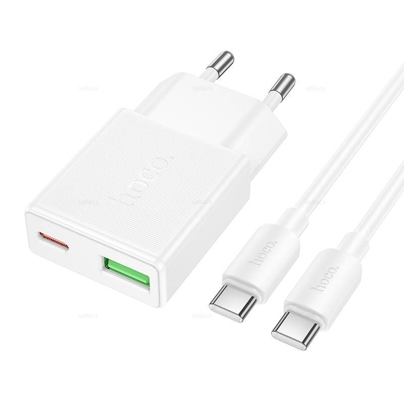 Сетевое зарядное устройство Hoco N73 ультратонкий (QC3.0 +PD20W с кабелем Type-C-Type-C) цвет: белый