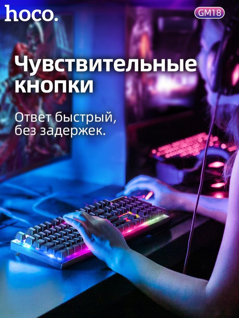 Набор игровой клавиатура+мышь Hoco GM18 с подсветкой, цвет: черный